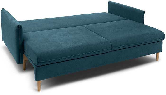 Внушающего спального места с лихвой хватит для двух взрослых. Под сиденьями расположено вместительное отделение для хранения пижамы и постельных принадлежностей. У дивана простой механизм трансформации. Подушки обеспечат оптимальную опору для тела и помогут максимально расслабиться.
